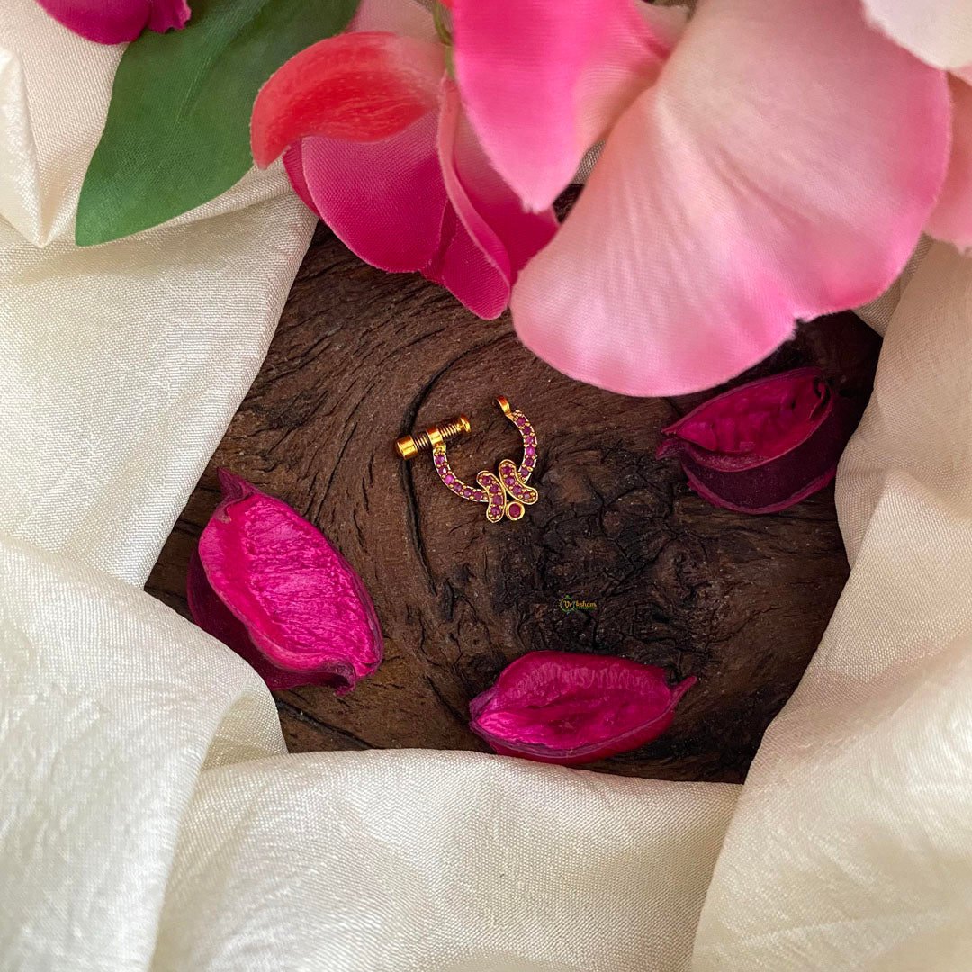 Indulge in luxury with our AD Stone Nath / Nose pin. Featuring a simple gold look and sparkling AD stones, this nath will elevate your style and add a touch...