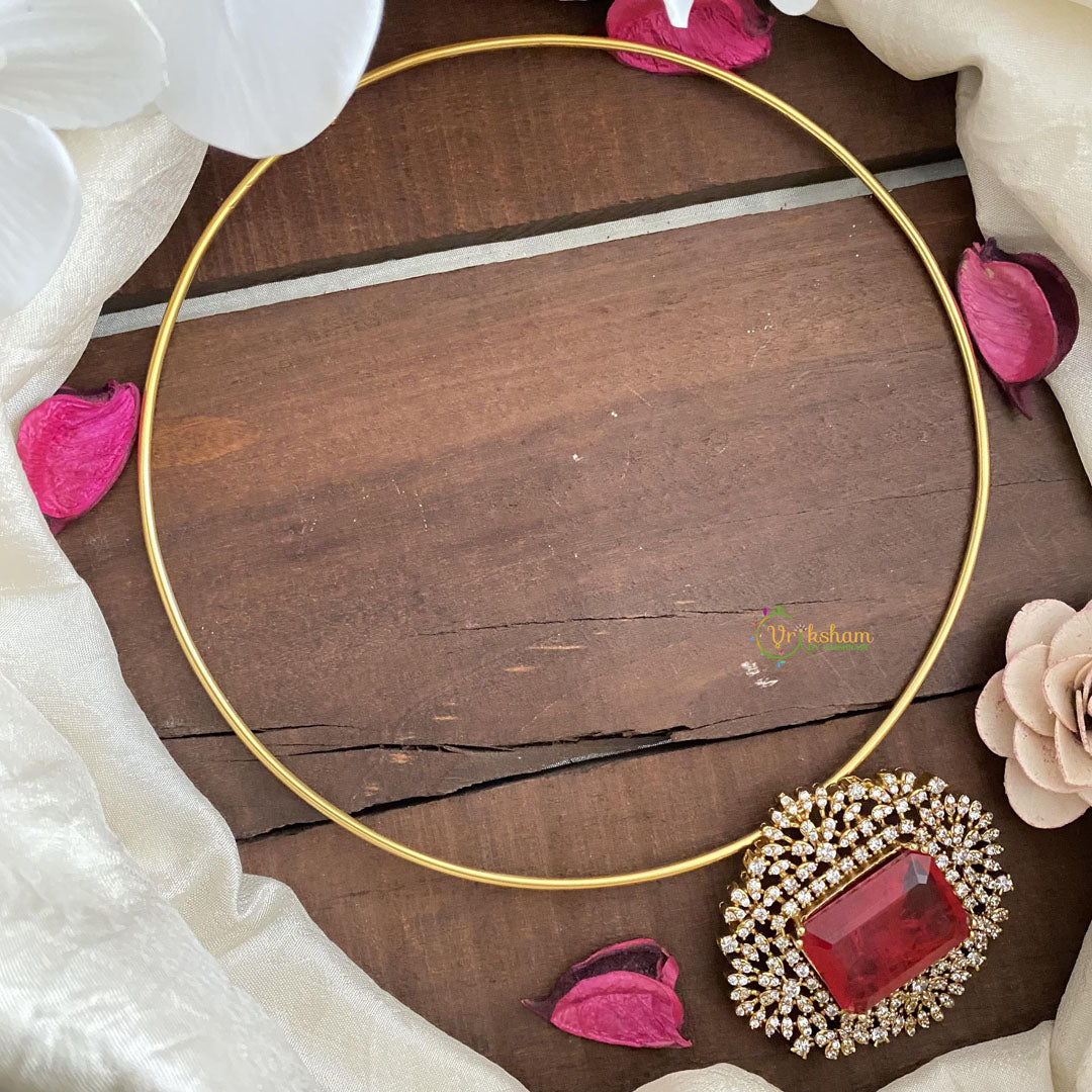 AD Stone Pendant Hasli Choker -Short Neckpiece - simple hasli neckpiece with pendant ; Neckpiece only.
