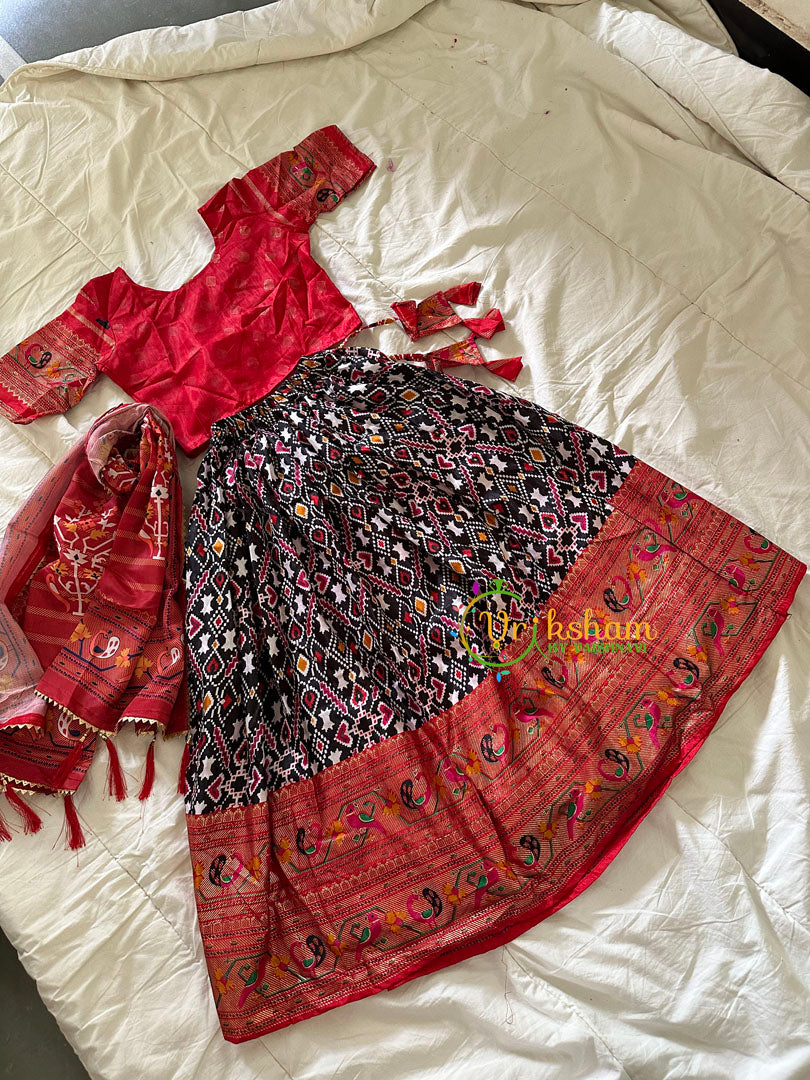 Red Black Kalamkari Lehenga Set for Girls – Festive wear dress set - consists of top, skirt and duppata for girl kids and teens.
