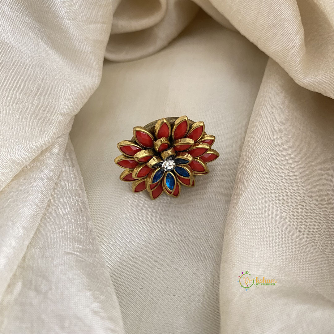 Red, Blue Kundan Pendant Ring-Flower- semi precious stone - Festive Wear Hair bands-premium gold like polish pendant.