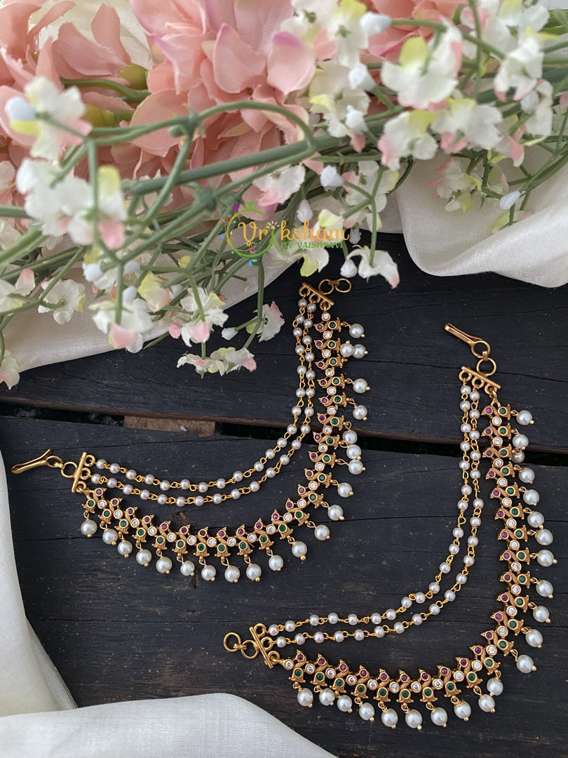 Red Green AD Stone Layered Maatil - floral pattern stone maatil/maatal ear chain.