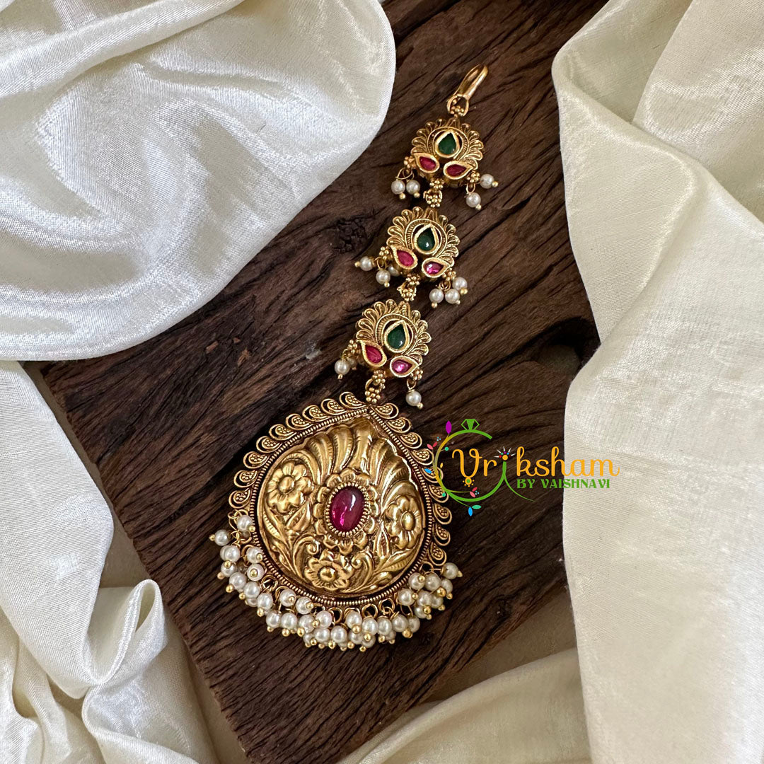 Red Green AD Stone Maang Tikka -Single Strand Bridal Tikka -These are center tikkas which modern brides recently have been preferring more along with their wedding jewelery.