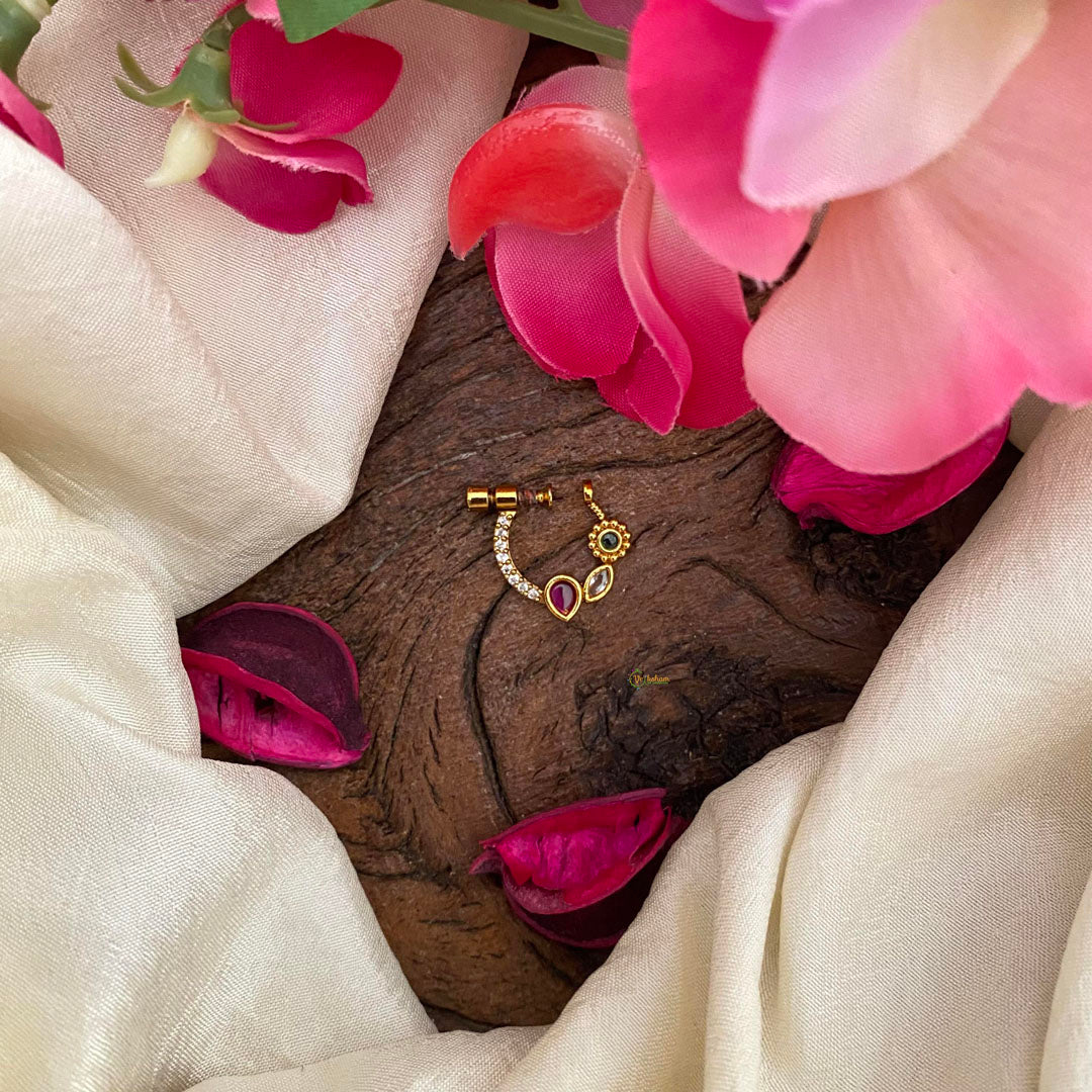Transform your look with our exquisite AD Stone Nath/Nose Pin. Adorned with sparkling stones, this elegant piece adds a touch of glamour to any ensemble. Make a statement of elegance...