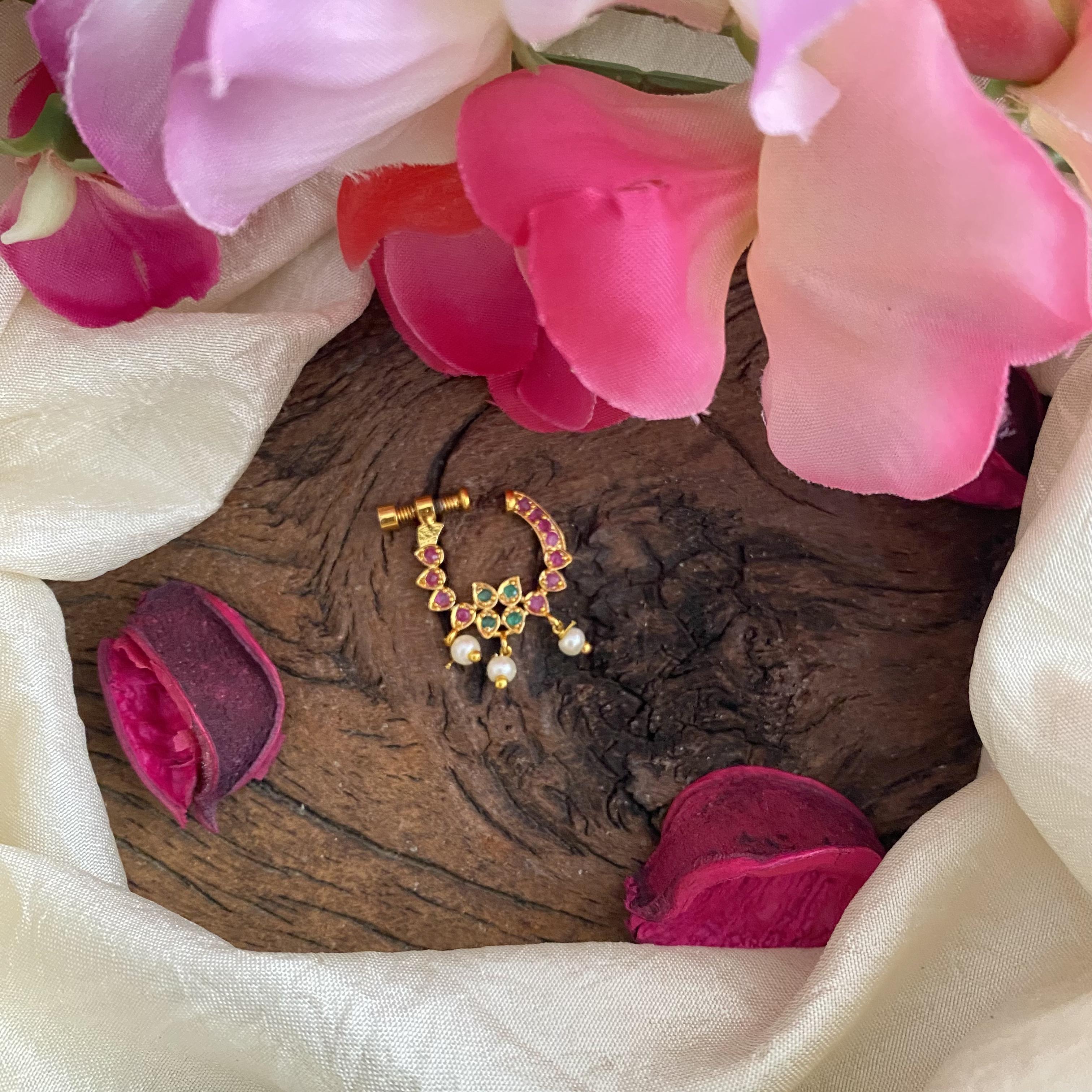 Red Green AD Stone Nath / Nose pin-Pearl-G13798