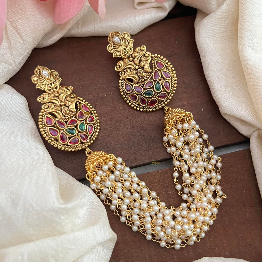Enhance your bridal ensemble with our stunning Red Green Bridal Jada Billai! Featuring intricate pearl detailing on the Maatil-Bun Billai, this hair accessory adds a touch of elegance and tradition to your special day. Elevate your bridal look and feel like a true queen on your wedding day!