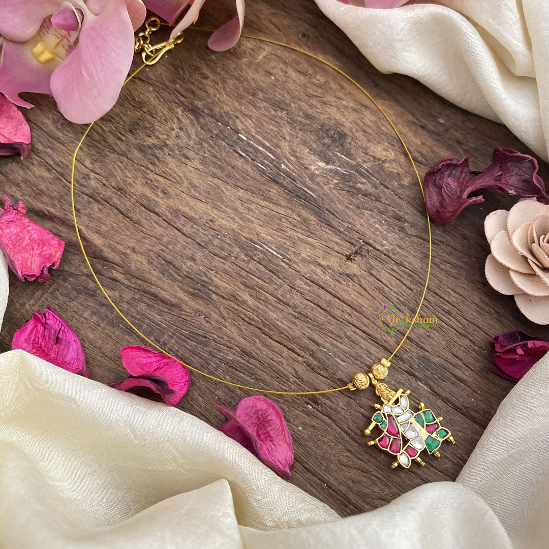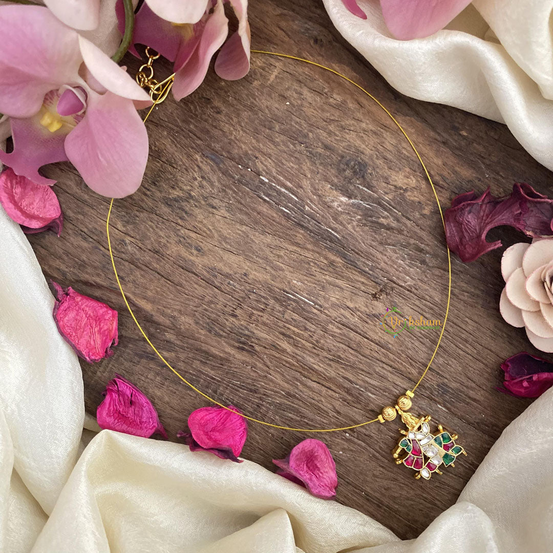 Red Green Jadu Kundan Krishna Pendant Invisible Neckpiece-G15569