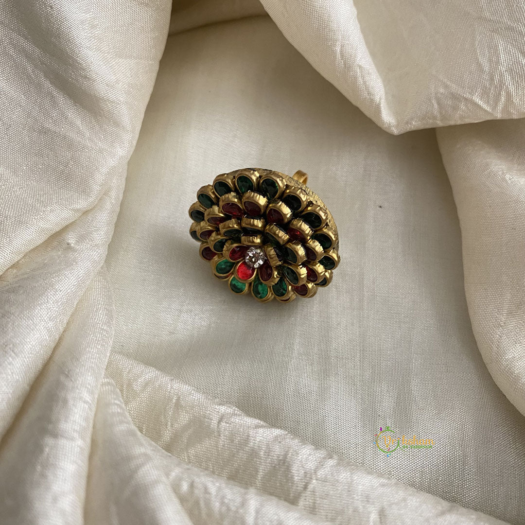 Red Green Kundan Pendant Ring-Flower- semi precious stone - Festive Wear Hair bands-premium gold like polish pendant.