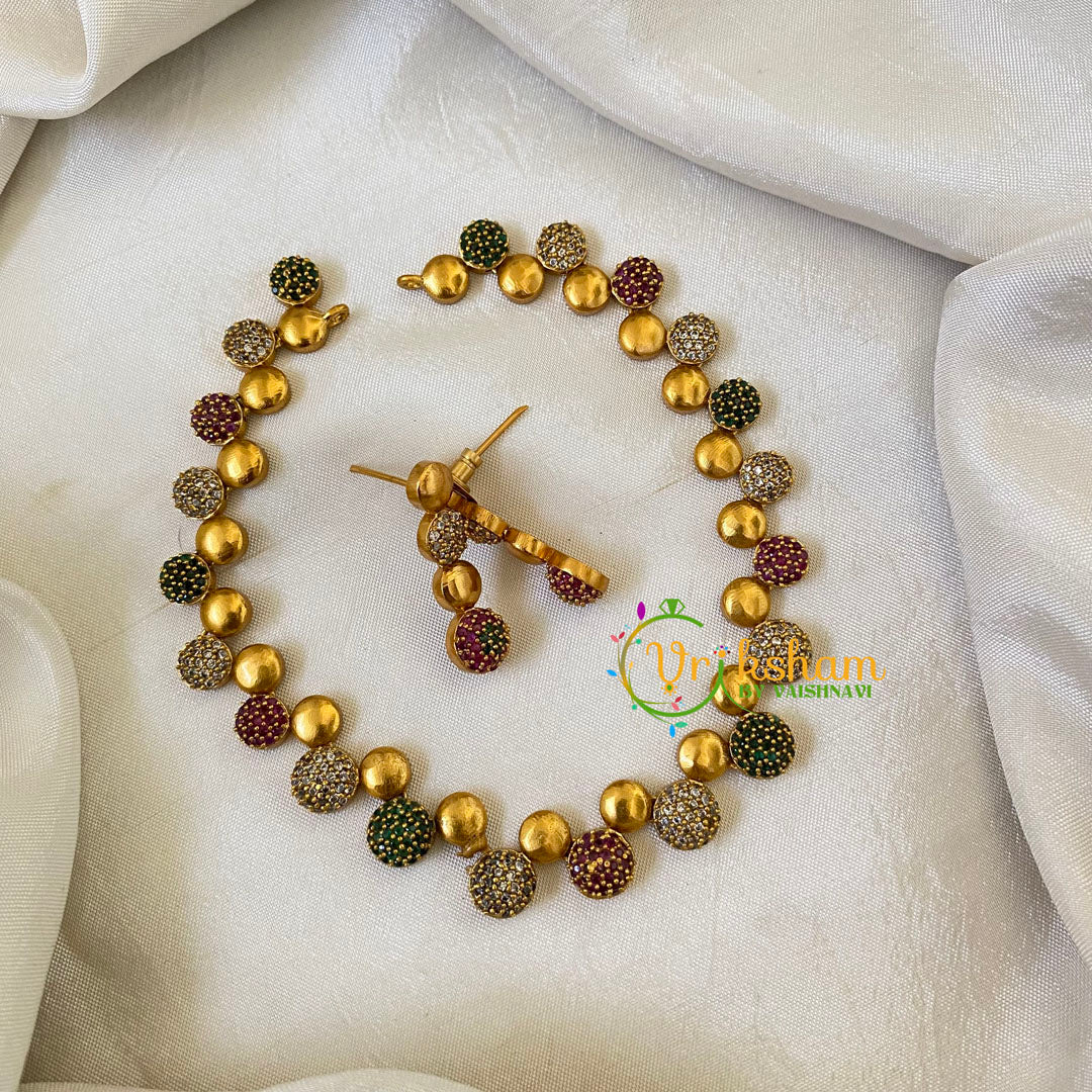 Red Green AD Stone Choker Short Neckpiece - geometrical sphere shaped pattern; comes with earrings.
