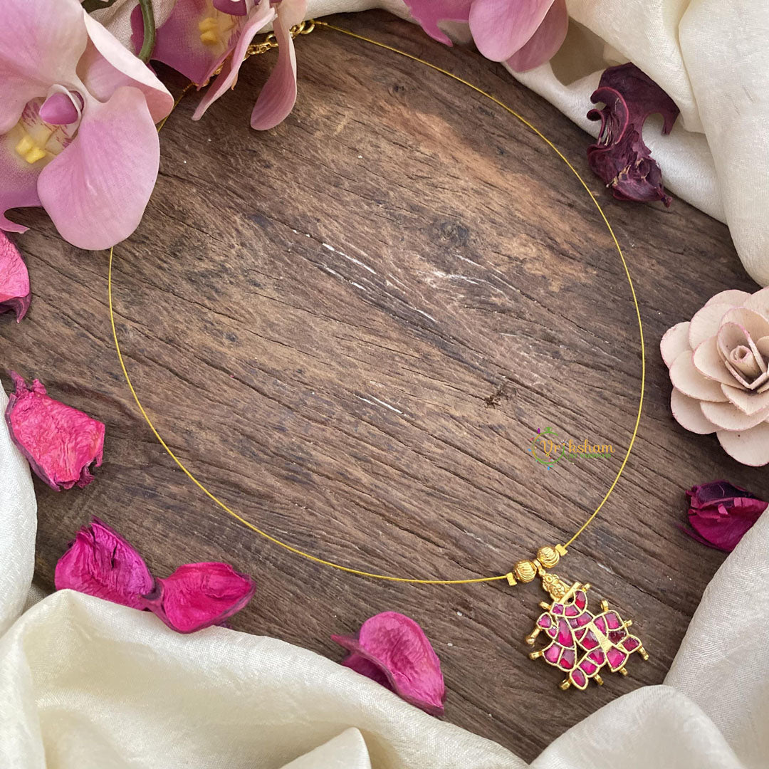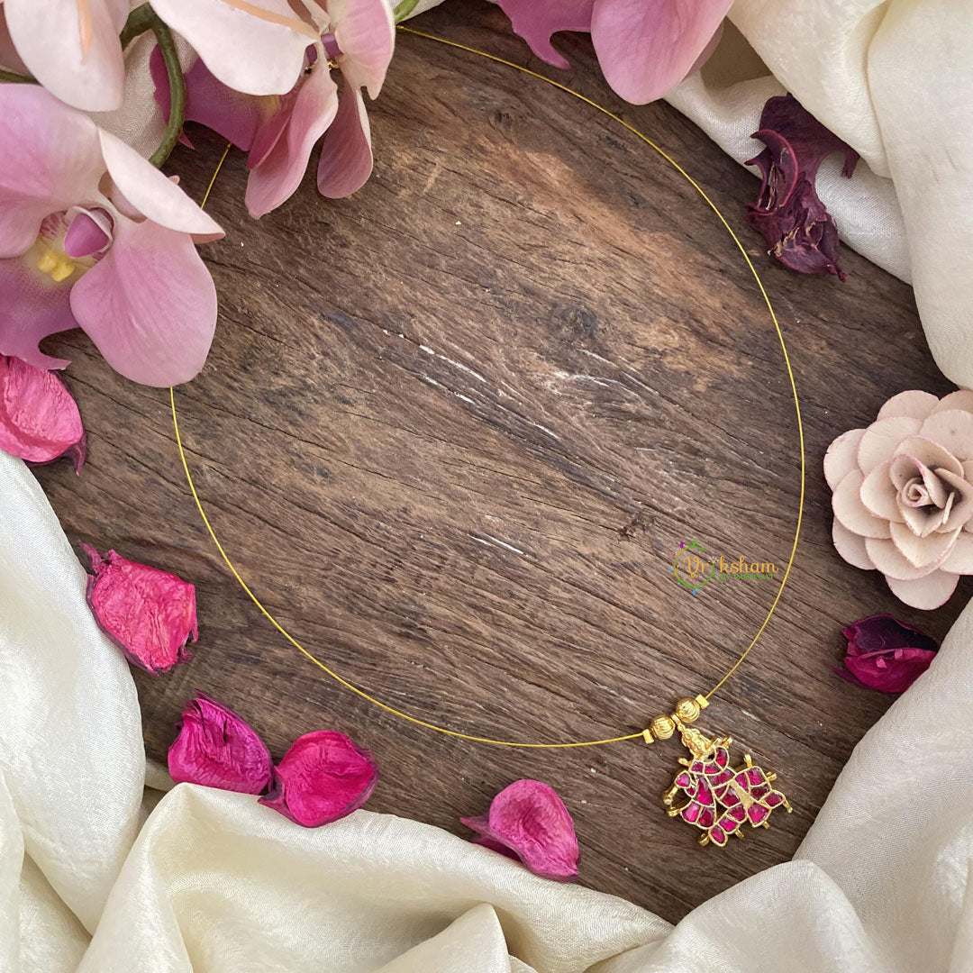 Red Jadu Kundan Krishna Pendant Invisible Neckpiece-G15567