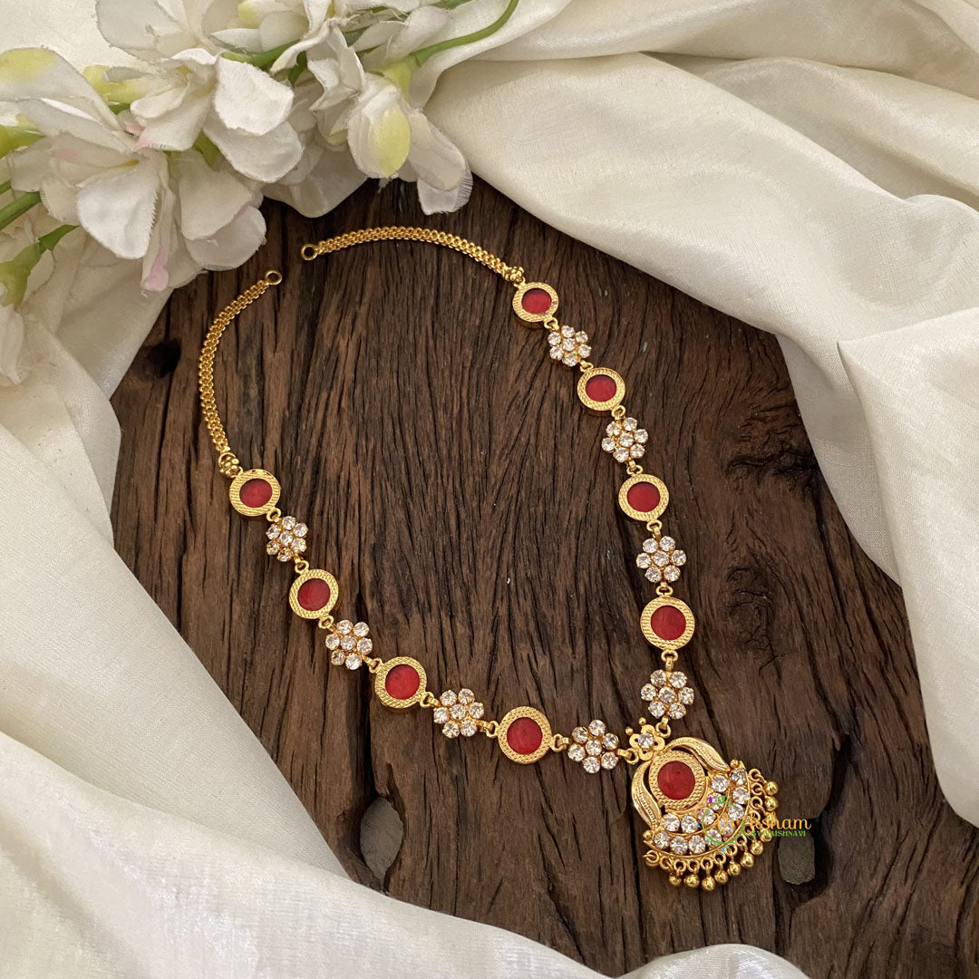 Traditional Gold Look Alike Kerala Style Short Neckpiece -Traditional Kerala Temple jewelry- RED PALAKKA STONE NECKPIECE- pendant short neckpiece.