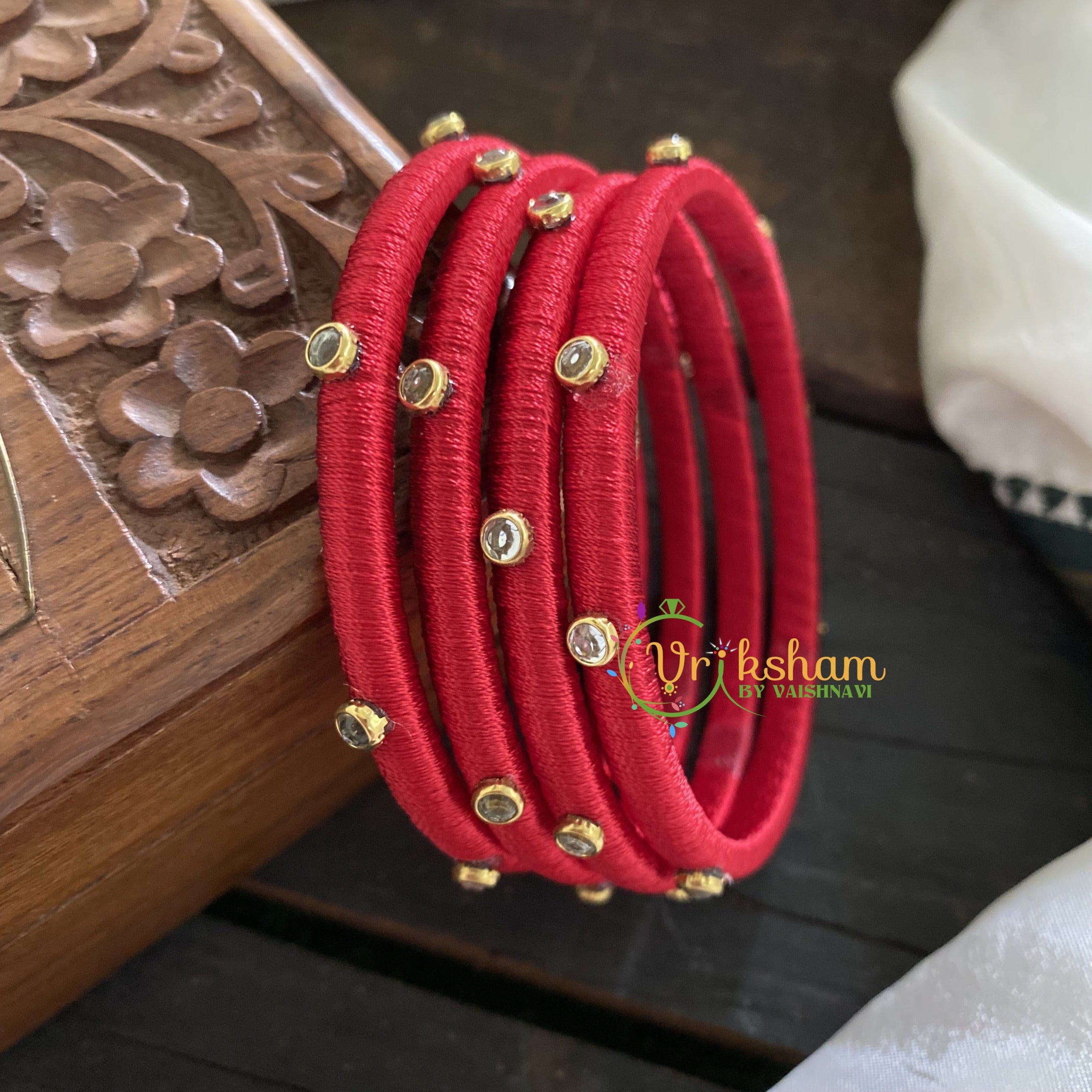 Red Silk Thread Bangles with Glossy stone set festive bangles , Comes as 4 bangles only.