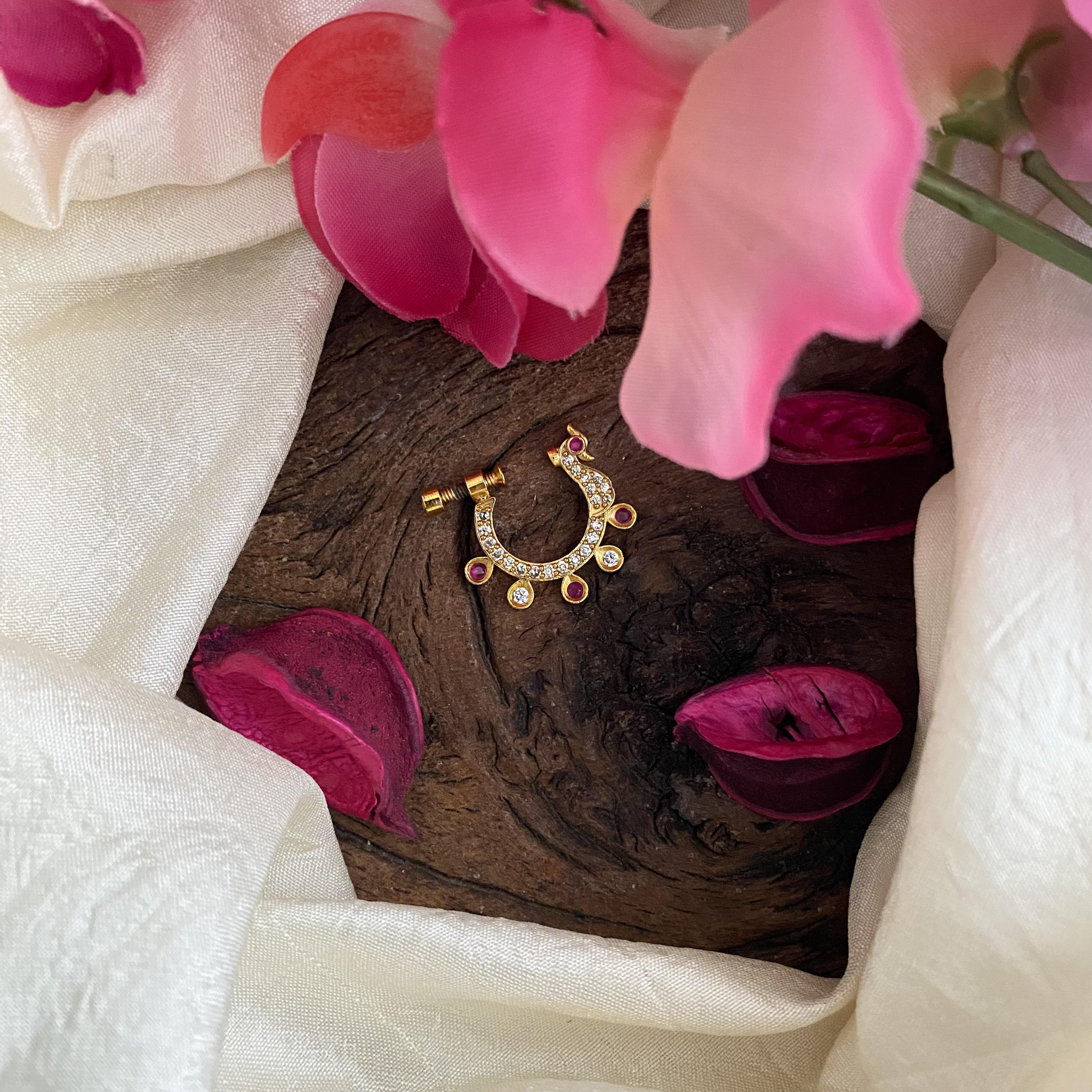 Red White AD Stone Peacock Nath / Nose pin-G13802