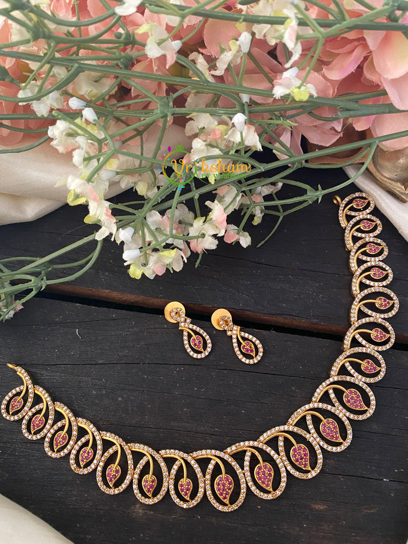 Red White CZ Stone Choker Neckpiece - spiral shaped with leaves in it , comes with matching danglers.