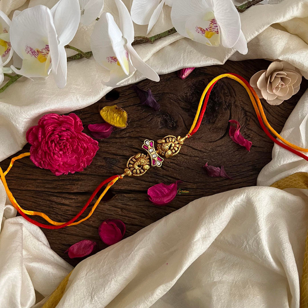Red White Kundan Stone Peacock Pendant Rakhi-Rakshabandhan-G13022