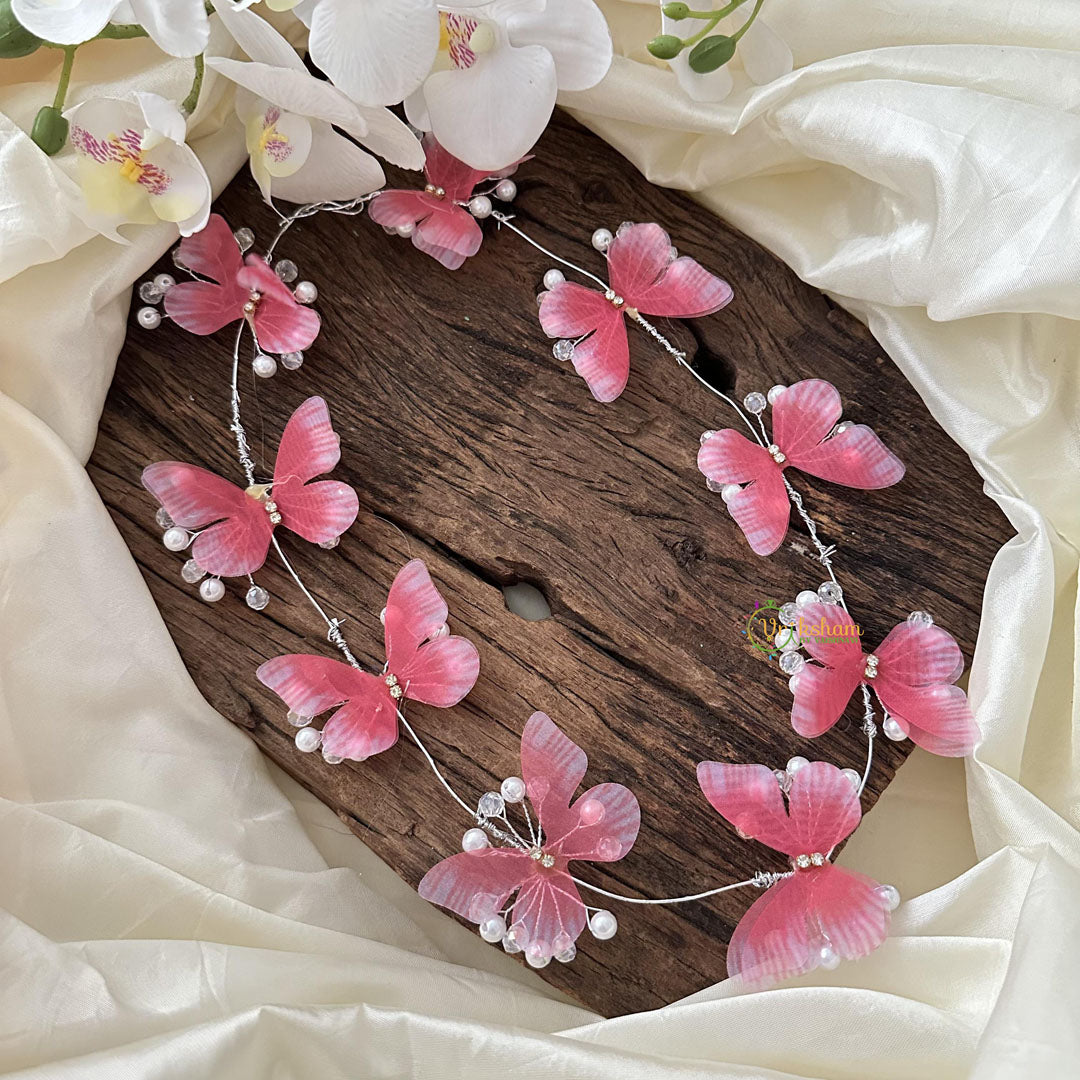 Reddish Pink Butterfly with Beads Hair Accessories-H636