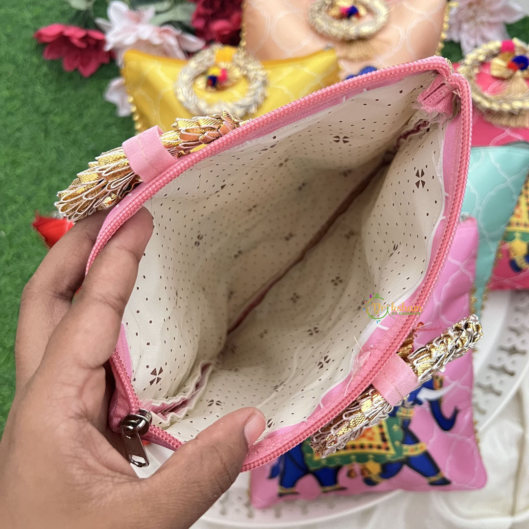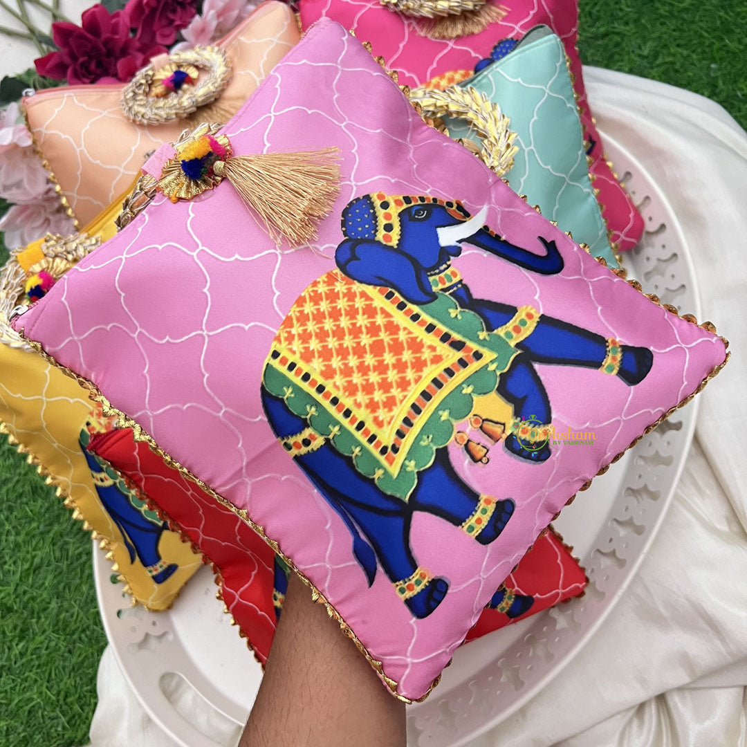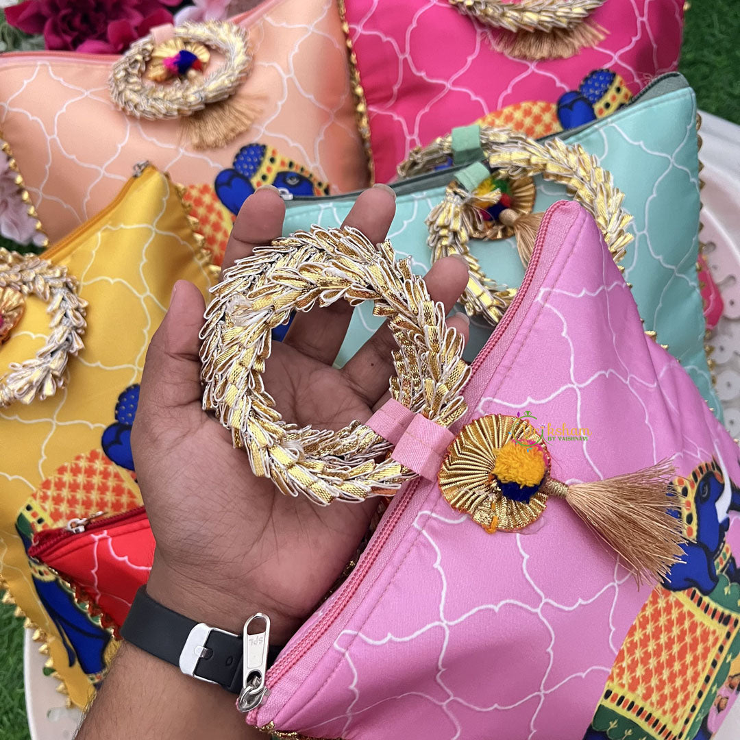 Elevate your gifting experience with this set of six Royal Elephant gift pouches, each adorned with an elegant golden handle. Crafted to impress, these hand bags blend traditional charm with sophisticated design, making them perfect for return gifts that leave a lasting impression. Ideal for weddings, celebrations, or special occasions, these pouches offer a stylish and refined way to present your tokens of appreciation.