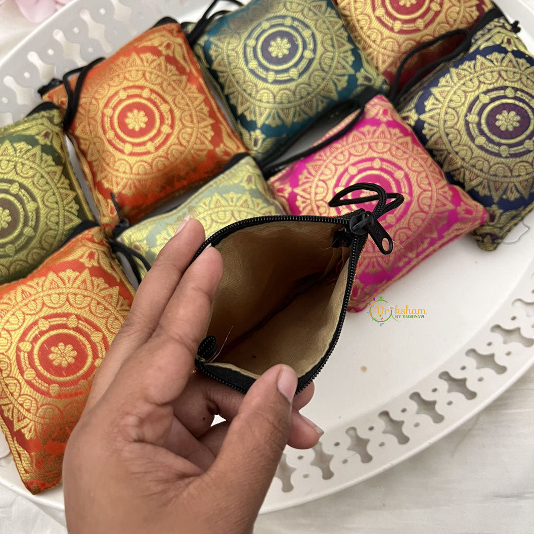 Return Gift Purses -Benarasi Pouches -6 pieces Set- assorted colors - butta pattern.