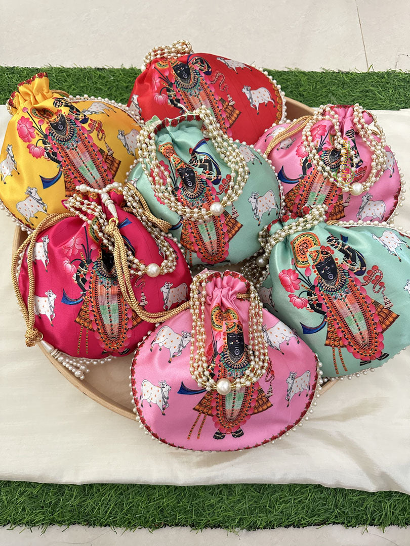 Return Gift Purses -Benarasi Pouches -6 pieces Set- assorted colors - butta pattern.