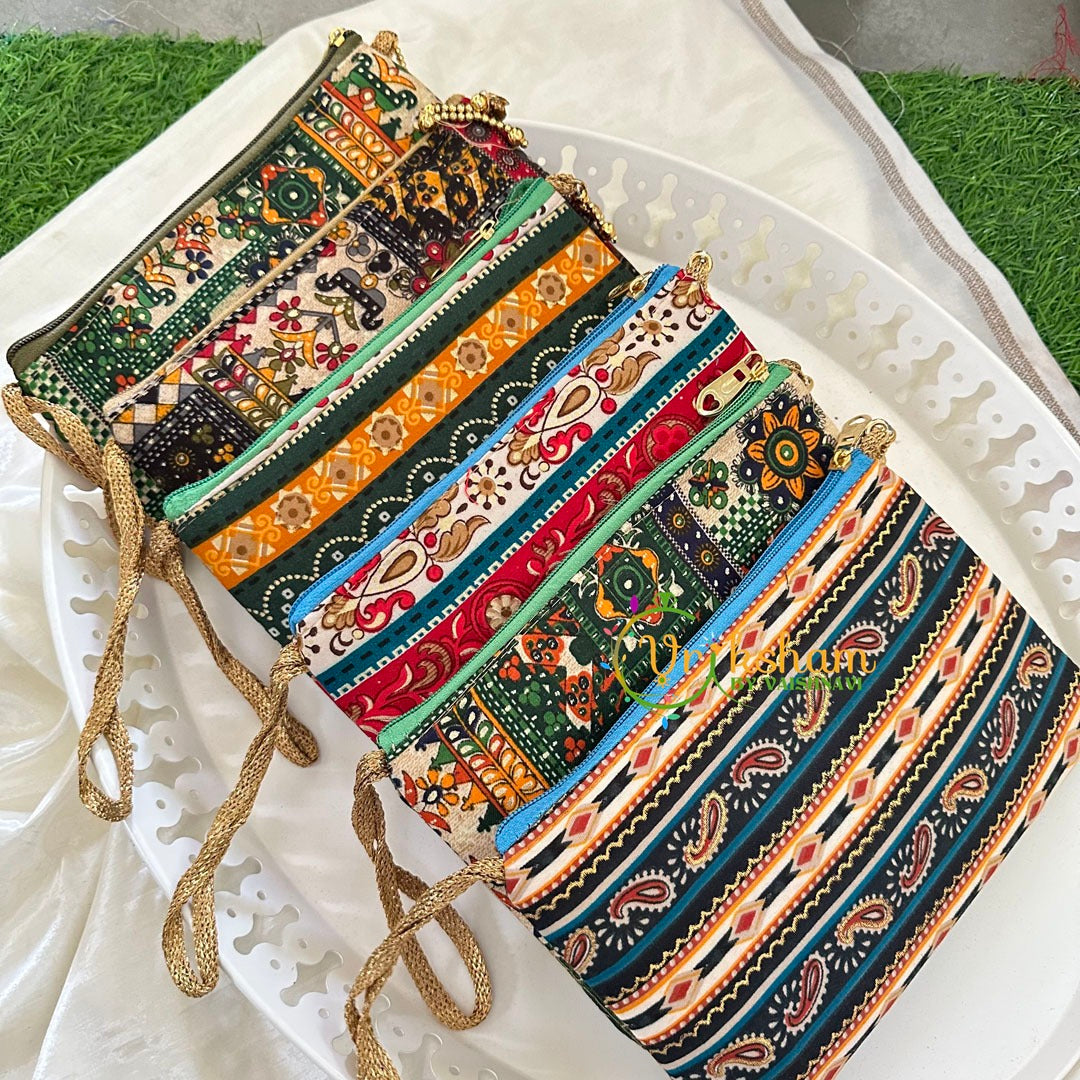 Return Gift Purses -Thread Work Pouches -6 pieces Set- assorted colors - design printed with thread work.