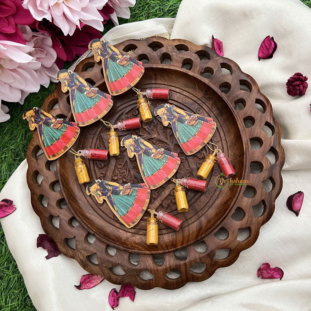 Return Gift Traditional Lady With Flowers Sticker With Kumkum & Haldi-Set Of 6-RG324