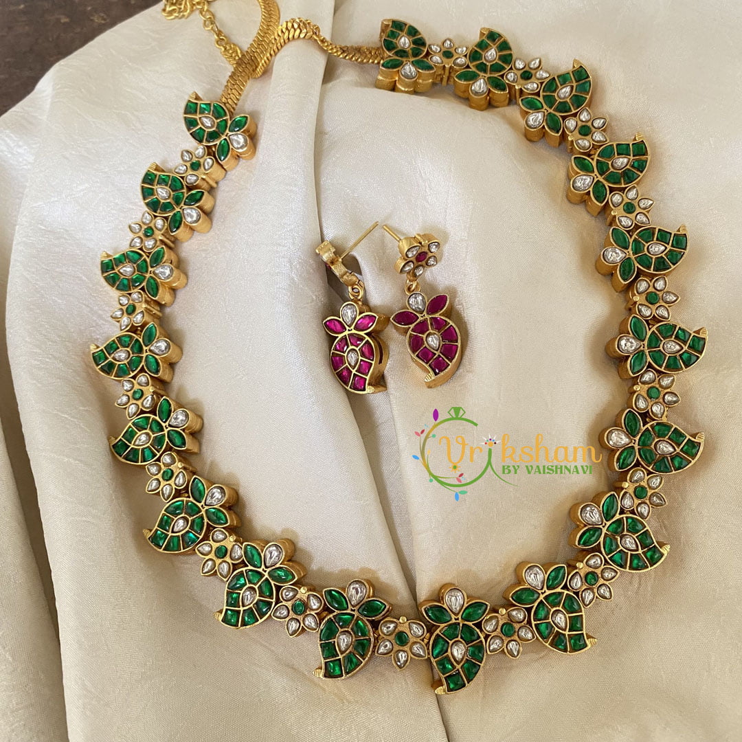 Reversible Jadau Kundan Maanga Short Neckpiece -Pink or Green - is one of our highest quality royal jewellery; handmade by artisans; this boasts the design and quality of a real silver haram but at an afforable price.