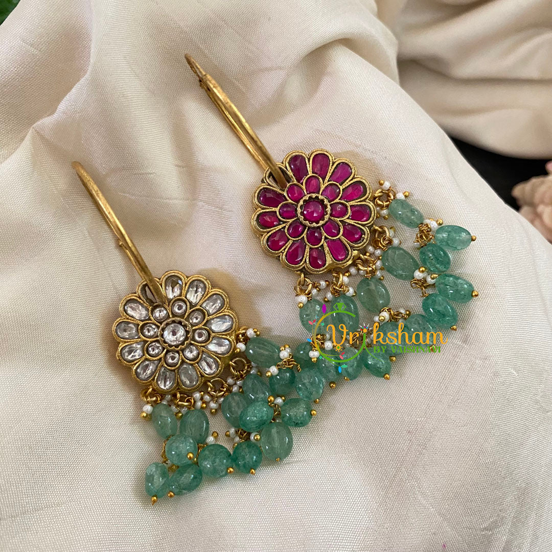 Reversible Precious Jadau Kundan Danglers -Red or White– is one of our highest quality royal jewellery; handmade by artisans; this boasts the design and quality of a real silver.
