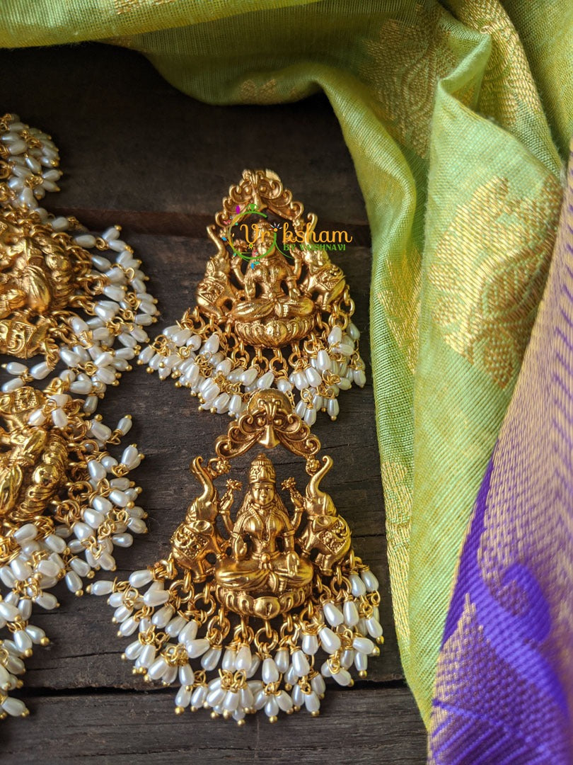 Rice Pearl Temple Guttapusalu Short Neckpiece - Lakshmi - Gold look alike Plain Lakshmi pearl embellished choker with cute little pair of Guttapusalu Lakshmi studs.