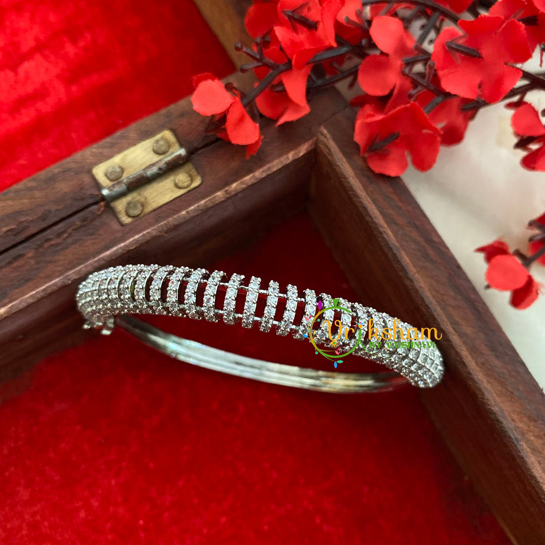 White Tone Ring American Diamond Bracelet-White -Ring pattern AD stone studded across. Openable Kada type bracelet.