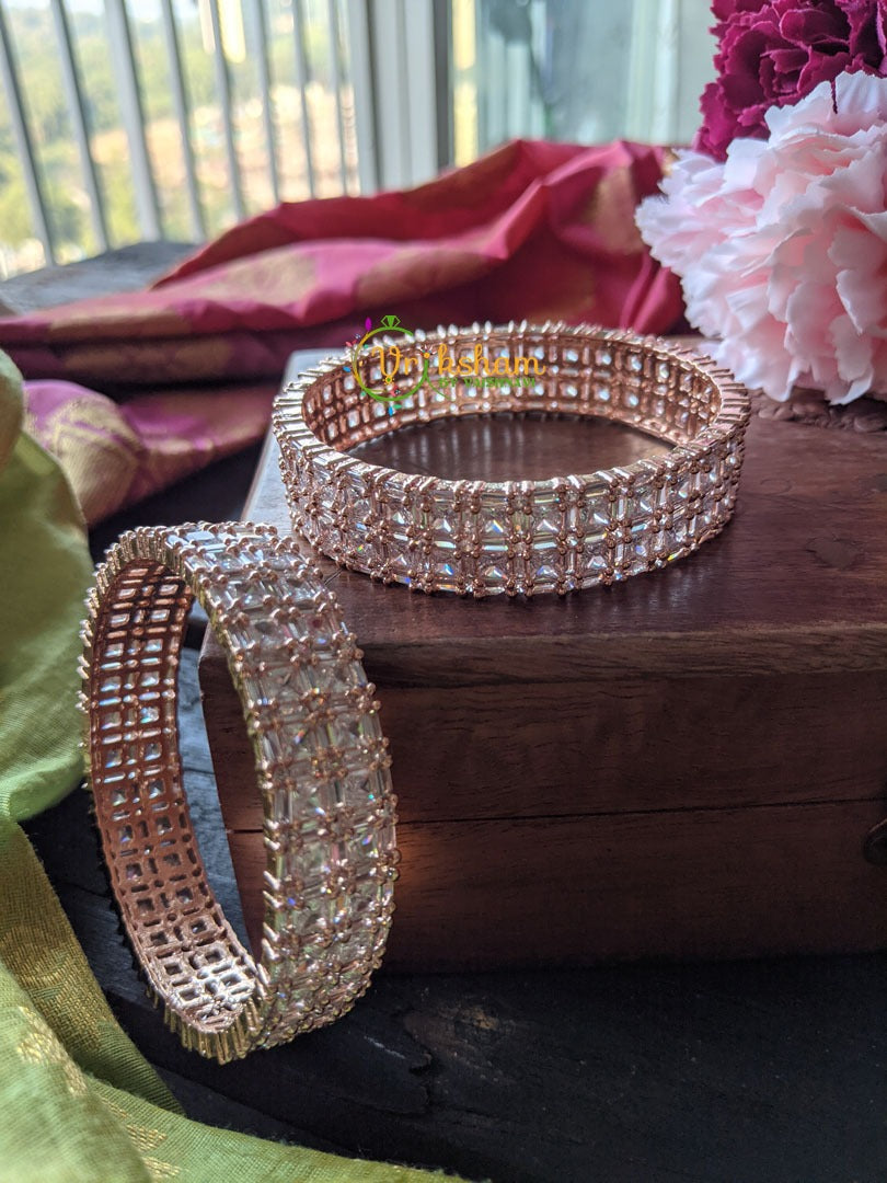 Rose Gold AD Stone Bangle -Geometric - Complete AD stone set bangle pair, Rose gold tone. Comes together as a pair only.
