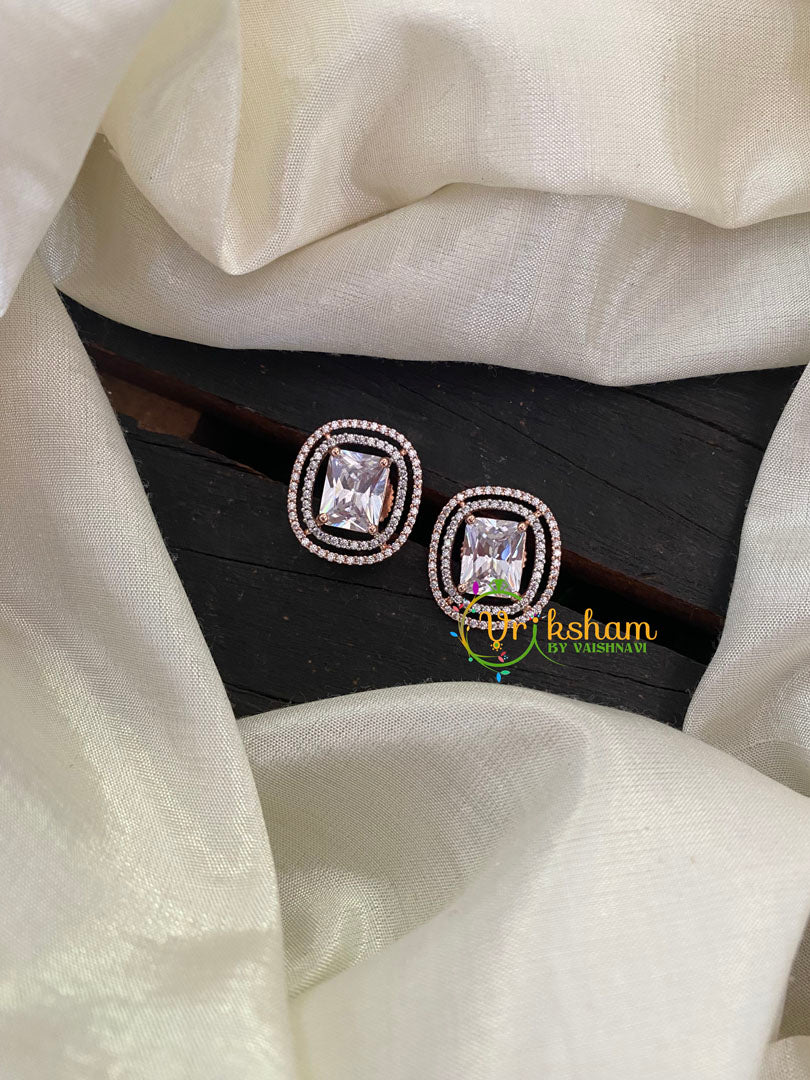 Rose Gold American Diamond Stud -Designer wear ad earrings; comes as a pair.