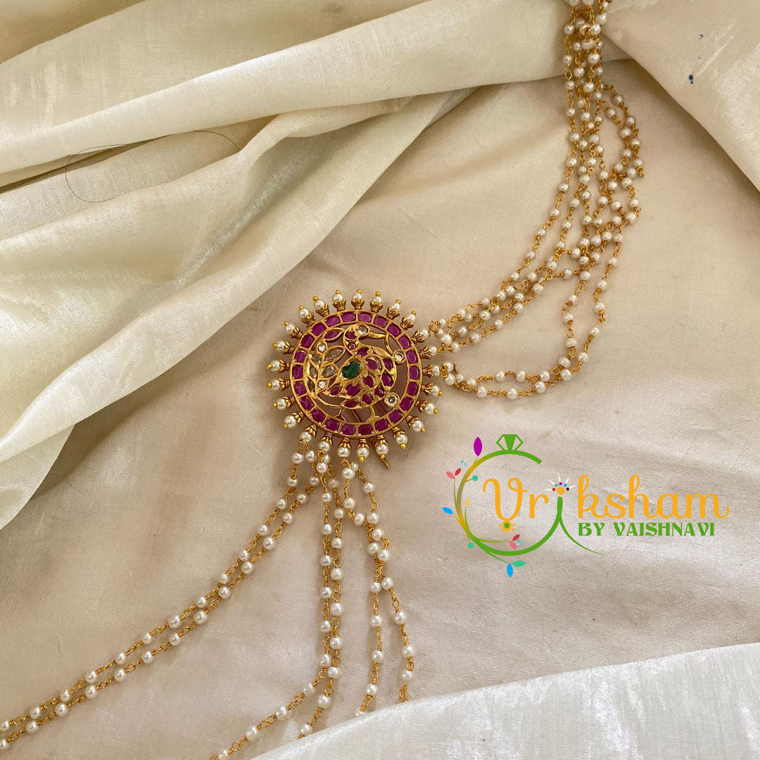 Round Jada Bun Billai with Maatil -layer of pearl chains -Bridal Bun Jada Billai – Bridal Hair Accessory-  imitation AD stone set single piece billai.