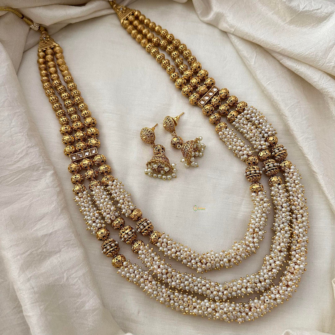 Royal Cluster Pearl 3 Layer Malai with Golden Beaded-G13382
