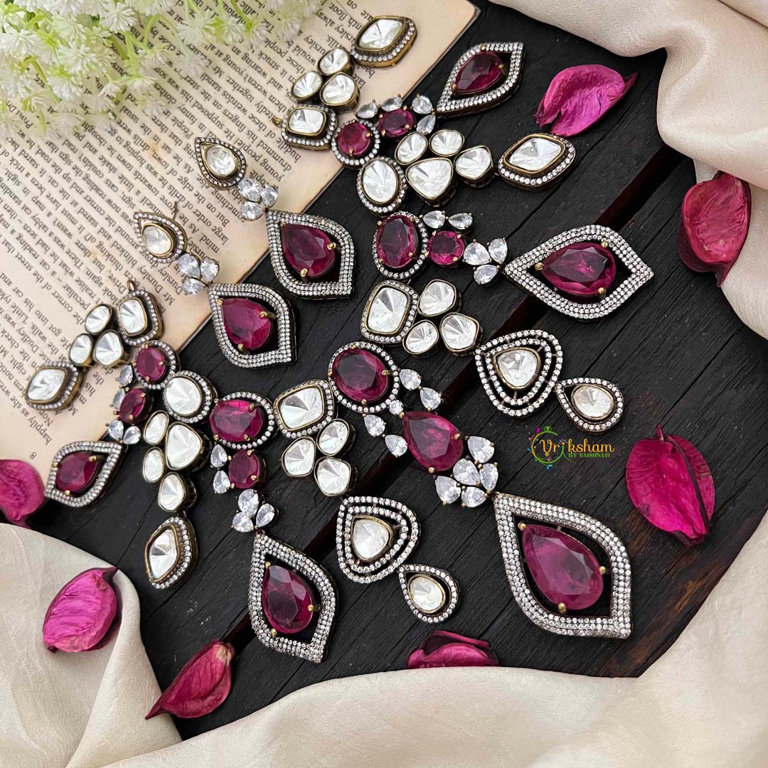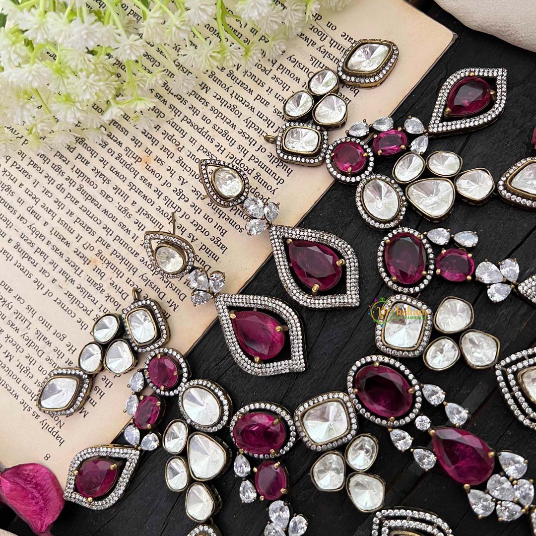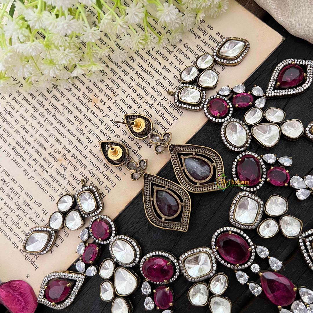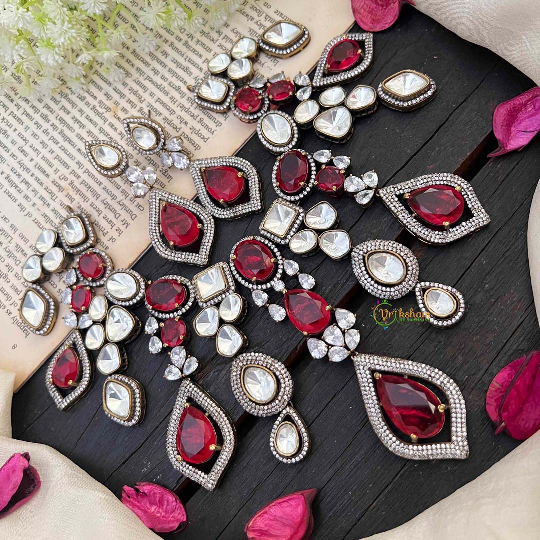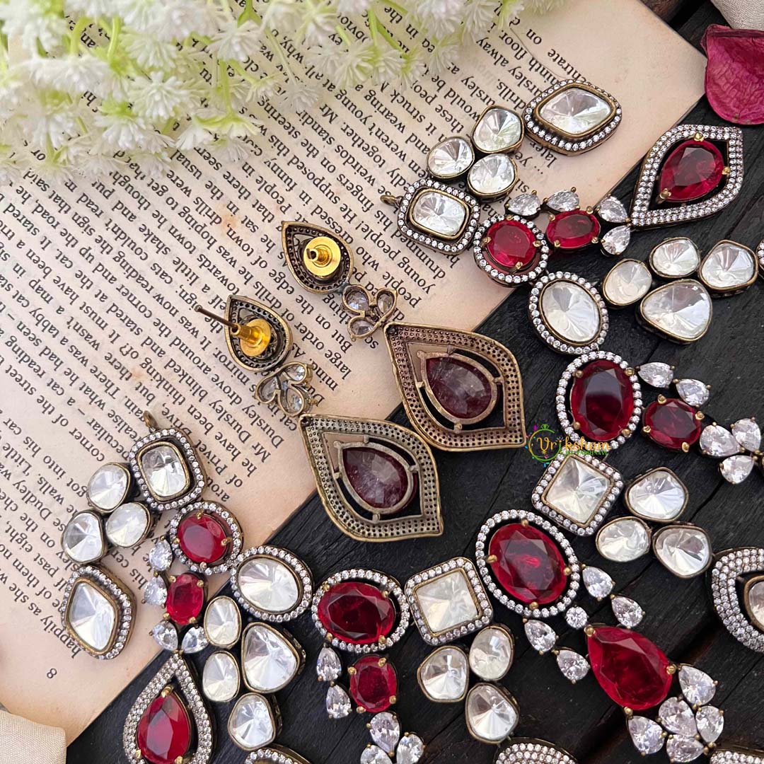 Premium Victorian Diamond Choker Short Neckpiece - white and red color semi precious stone studded ; royal statement jewelry; comes with matching earrings.