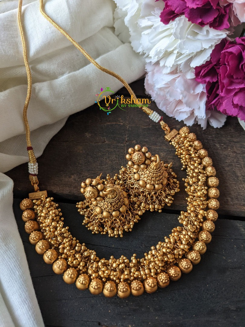 Samantha Choker -Matt finish Ghungroo Choker – the famous cluster ghungroo choker with gold look alike tone premium actress samantha choker, comes with jhumkas.