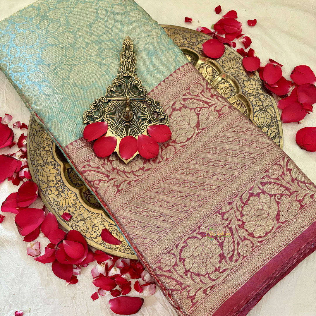 Light Mint Green with Red Semi Benarasi Saree -Tanchoi Collection-VS3652