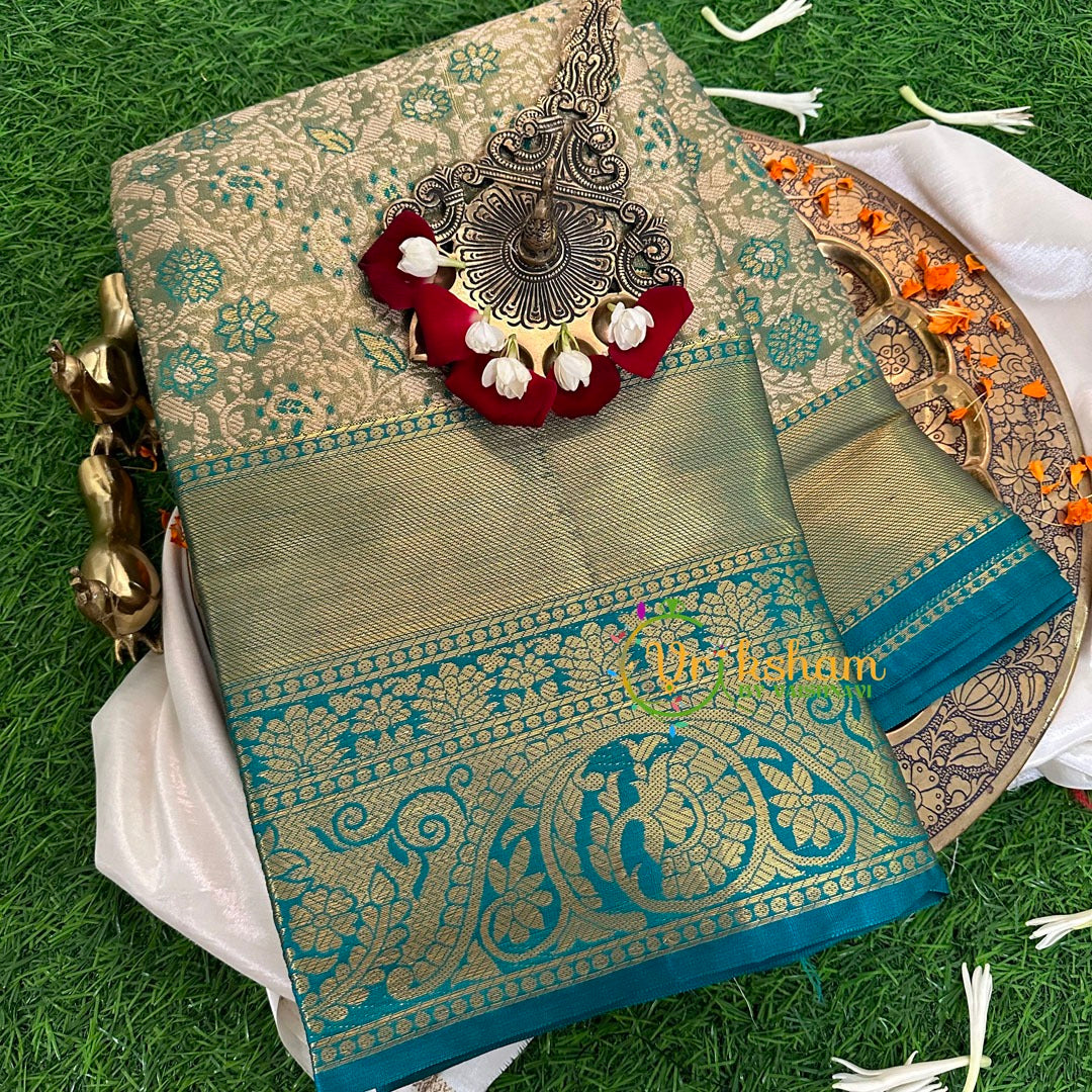 Moss Green and Teal Blue Semi Benarasi Saree -VS1172