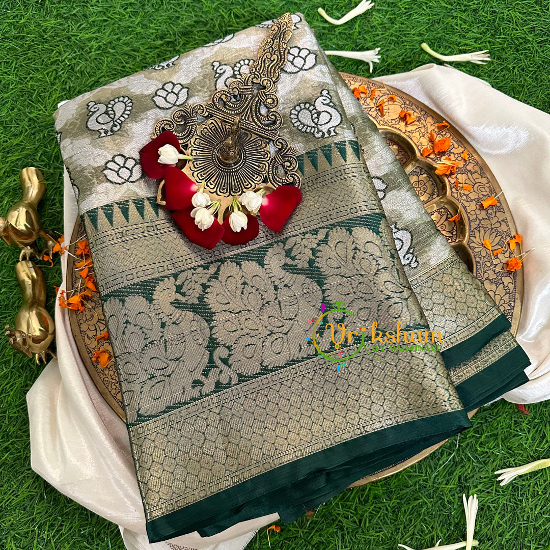 Bottle Green Semi Benarasi Saree -VS1176