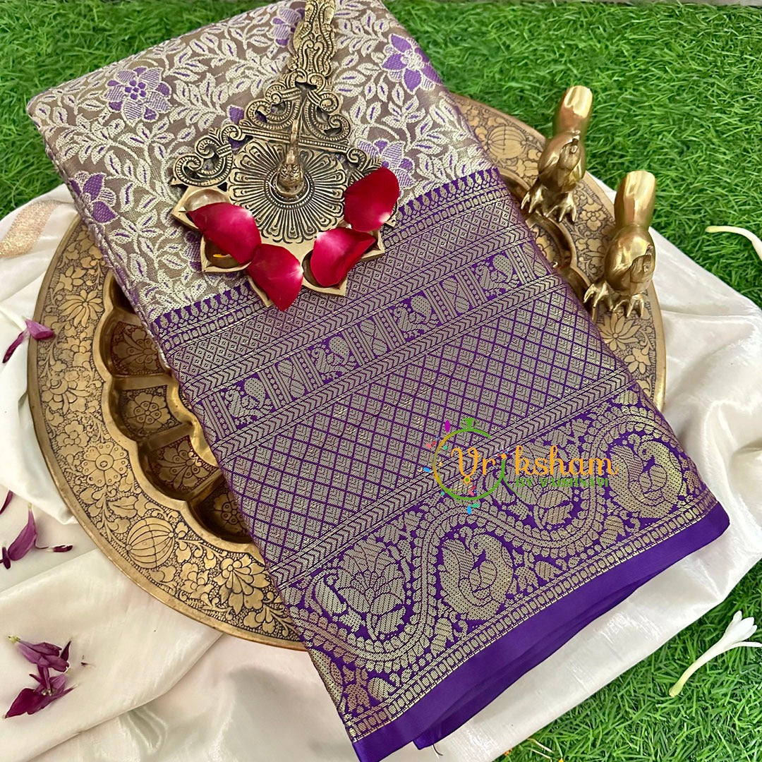 Elephant Grey Semi Benarasi Saree with Purple Border -VS1201