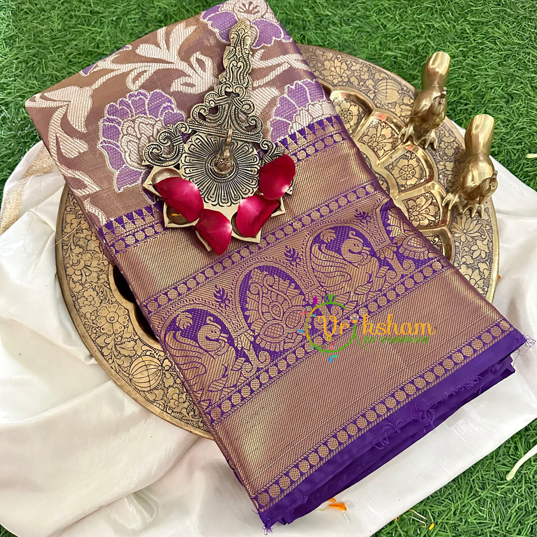 Brown Semi Benarasi Saree with Violet Border -VS1202