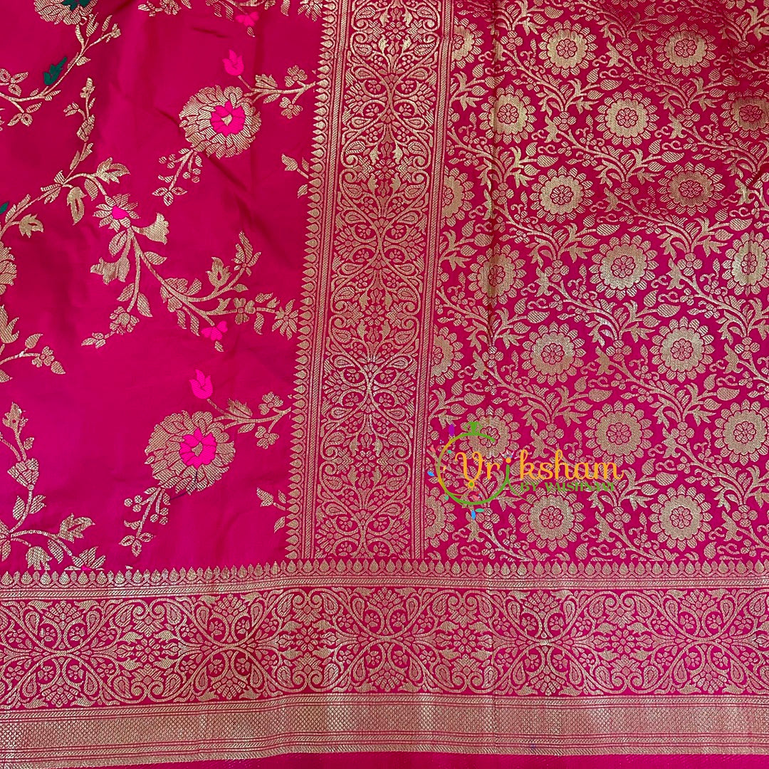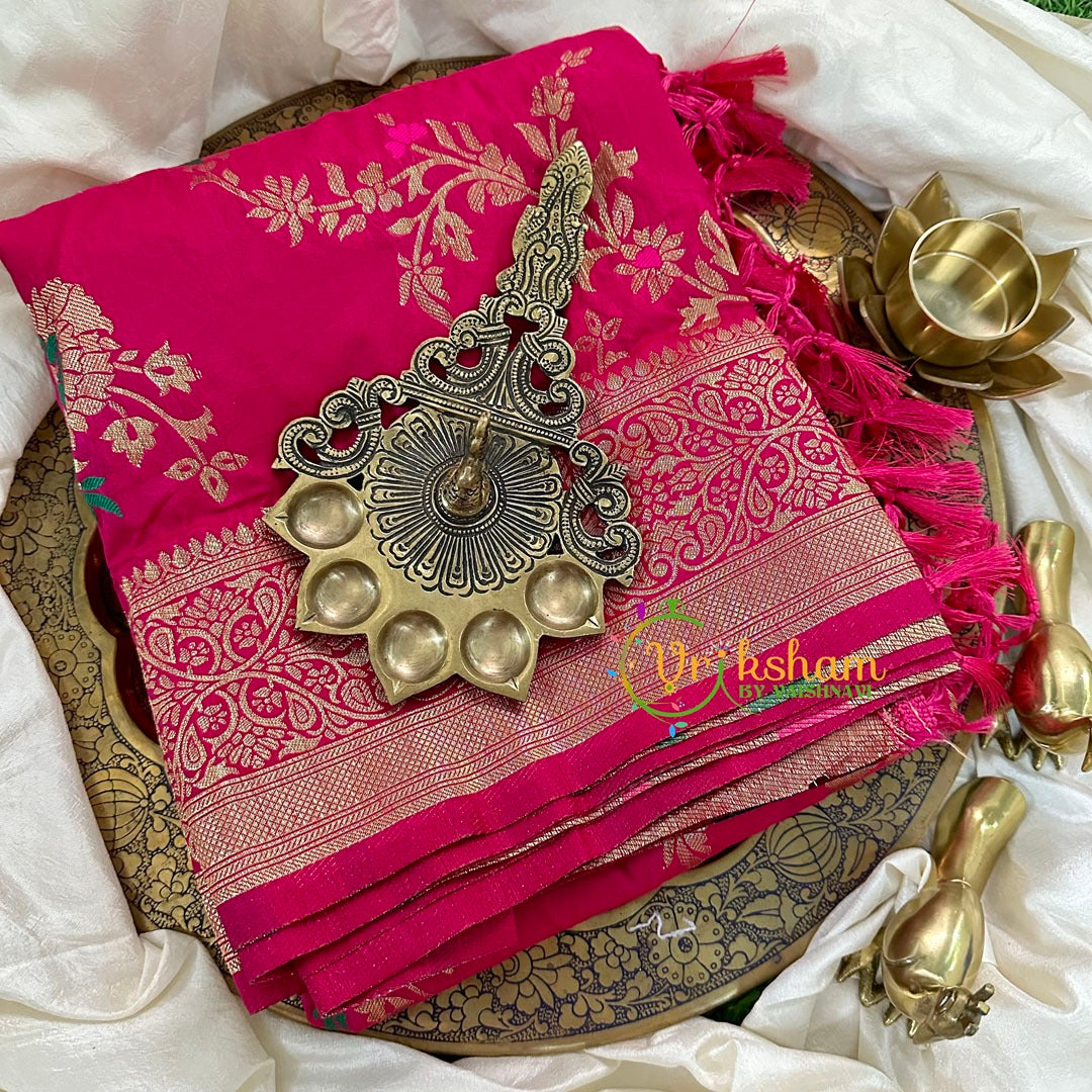 Semi Benarasi Saree – Festive wear saree –Embroidery like design work throughout the saree; comes with Blouse attached. Two side traditional border.