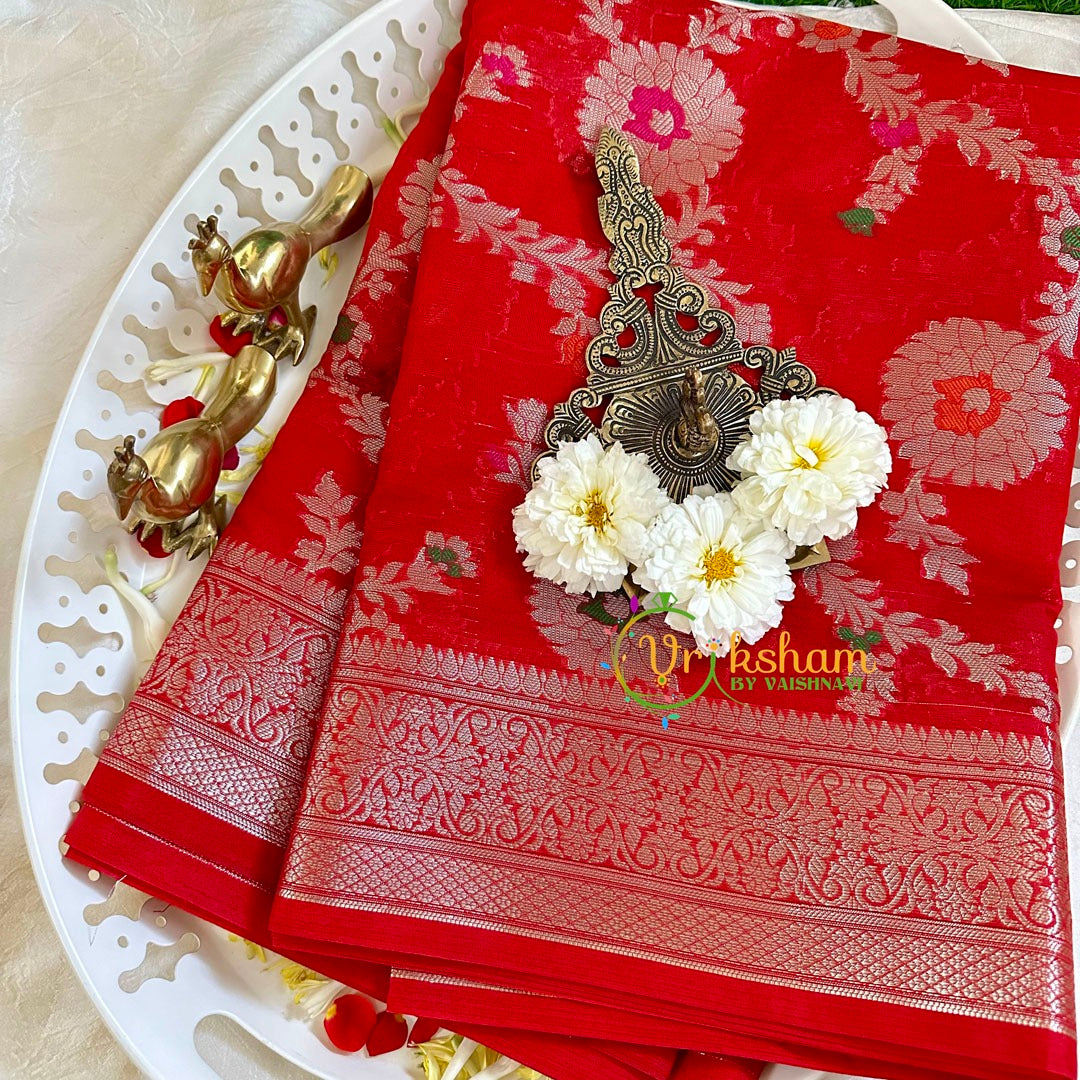 Kumkum Red Semi Georgette Soft Silk Saree -VS2008