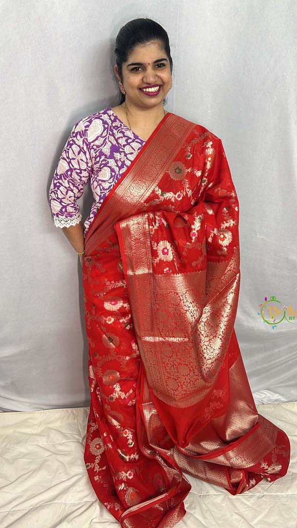 Material: Kumkum Red Semi Georgette Soft Silk Saree