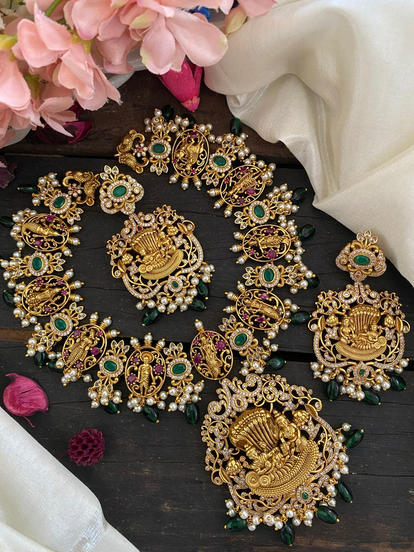 Shri Vishnu Dasavathar Neckpiece-Temple Neckpeice -AD Stone – dasavatharam of vishnu depicted idol Temple Neckpiece, comes with matching ear hangings.