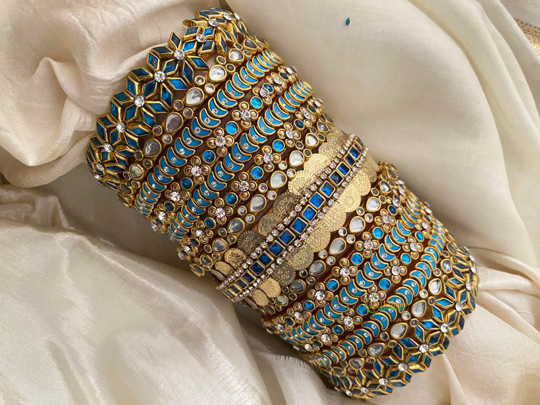 Silk Thread Blue Kundan Bridal Bangle– Silk Thread Bangles- kundan stone festive bangles , Comes as a set only.