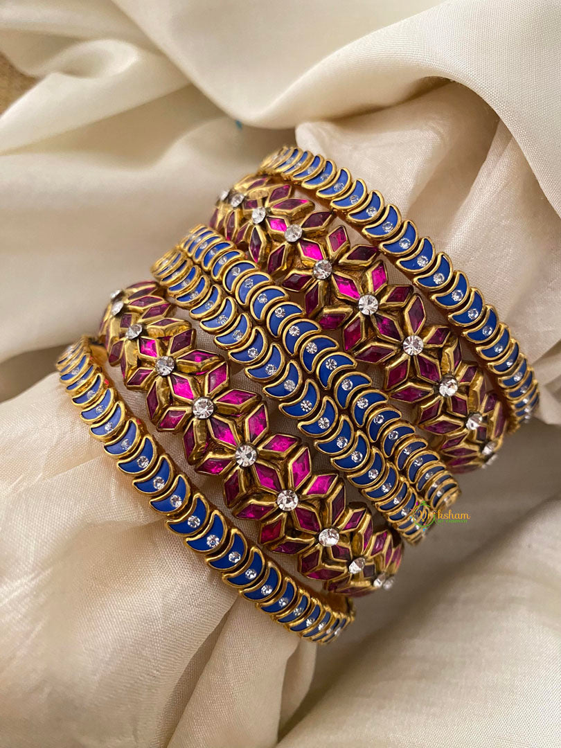 Silk Thread Dark Blue & Pink Kundan Bridal Bangle – Silk Thread Bangles- kundan stone festive bangles , Comes as a set only.