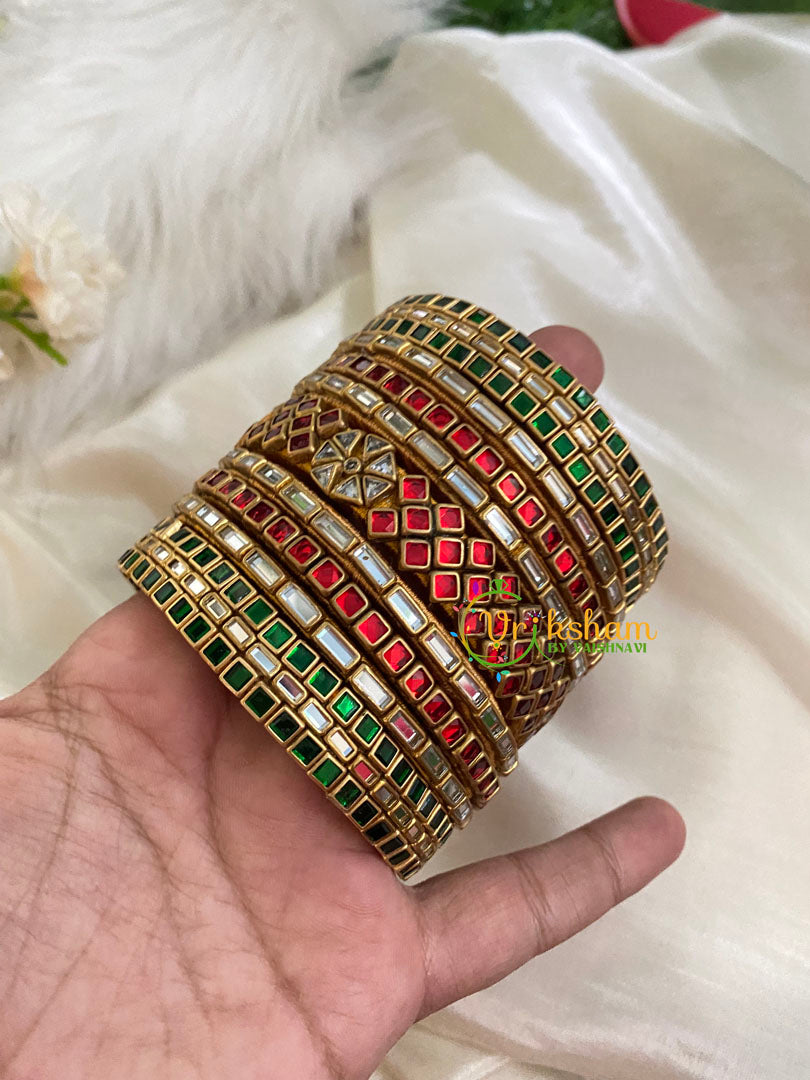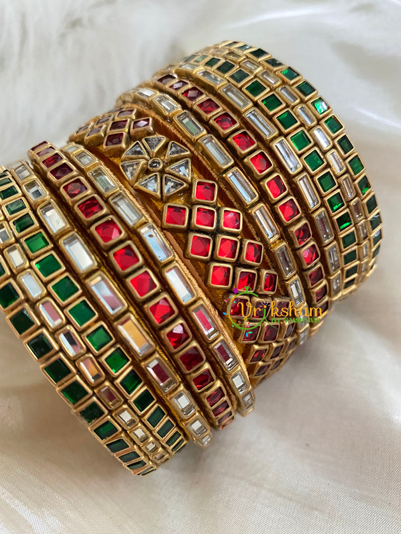 Silk Thread Kundan Bridal Bangle– Red Green- Silk Thread Bangles- kundan stone festive bangles , Comes as a set only.