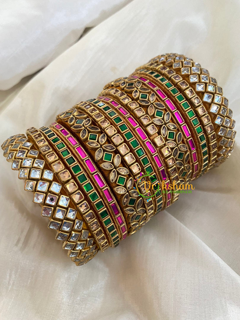Pink Green Silk Thread Kundan Bridal Bangle– Silk Thread Bangles- kundan stone festive bangles , Comes as a set only.