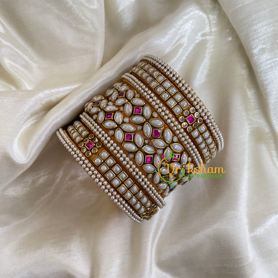 Matt White and Pink Silk Thread Kundan Bridal Bangle-G6225