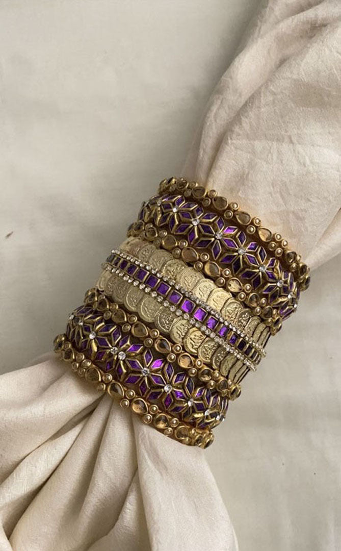 Silk Thread Kundan Bridal Bangle-Purple-G15267