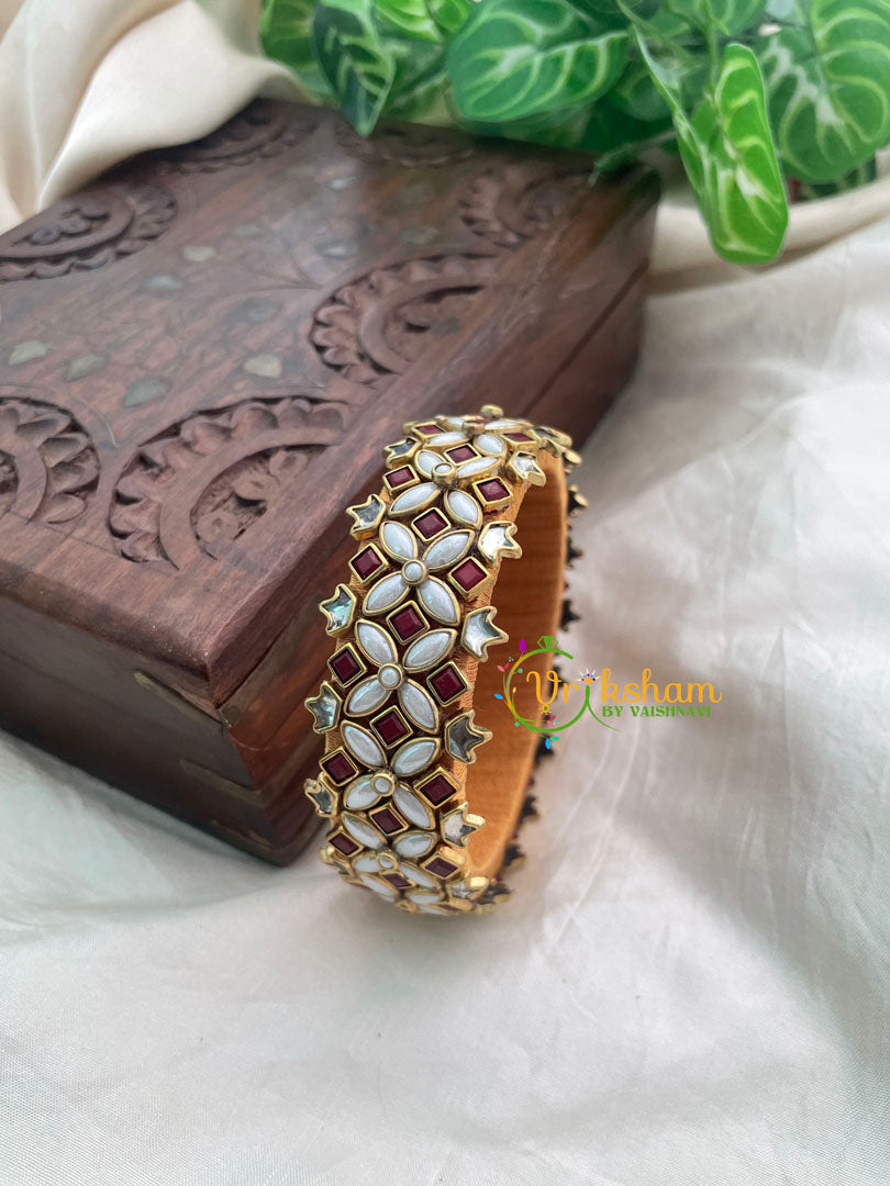 White Maroon Matt Silk Thread Kundan Kada Bangle -G8610